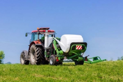 - Технологическая схема ,,в бок-назад” обеспечивает работу в направлении, параллельном или перпендикулярном направлении работы пресса подборщика (поперек поля), обеспечивает быструю загрузку рулонов, обмотку пленкой во время проезда к следующему рулону и высокую эффективность.